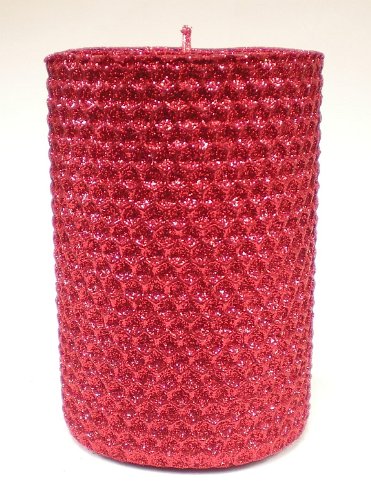 Gold Rush Natural Beeswax Glitter Candle, Hybrid Pillar Candle, 3 Inches Wide By 4 Inches Tall, Ruby Red Overviews
